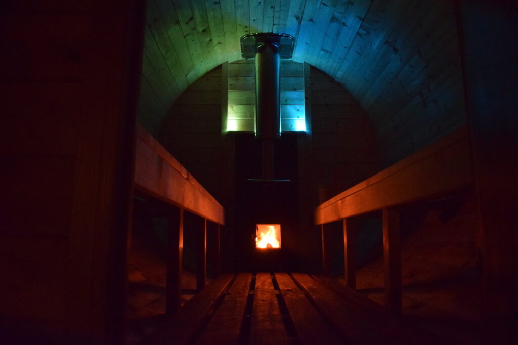 Nasz piec opalany drewnem jest sercem mobilnej sauny. Działa na zasadzie tradycyjnego pieca saunowego, gdzie drewno jest palone, a jego ciepło jest wykorzystywane do podgrzewania kamieni saunowych. To właśnie te gorące kamienie emitują miękkie, ale intensywne ciepło, tworząc przyjemną atmosferę sauny.